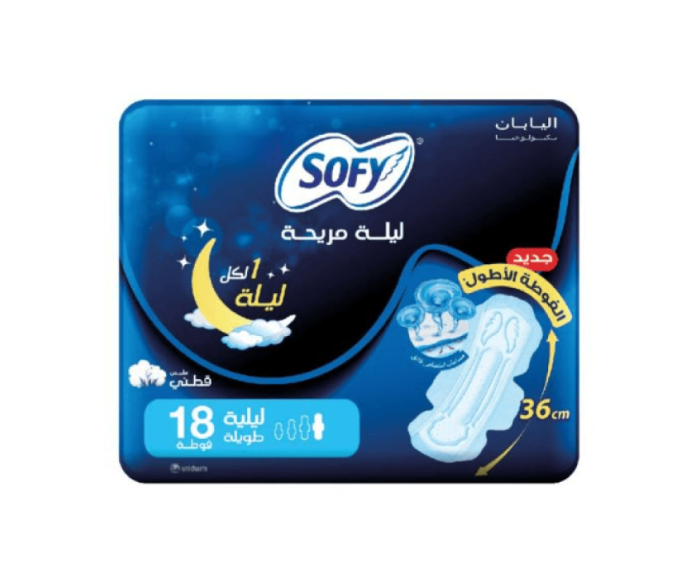 تأتي العبوة مع 18 فوطة طويلة بالأجنحة، ما يوفر لك كمية كافية للاستخدام اليومي طوال فترة الدورة الشهرية. سواء كنتِ في المنزل أو أثناء السفر، توفر لك سوفي ليلة مريحة الحماية القصوى والراحة التامة، لتستيقظي في الصباح وأنتِ تشعرين بالانتعاش والثقة.